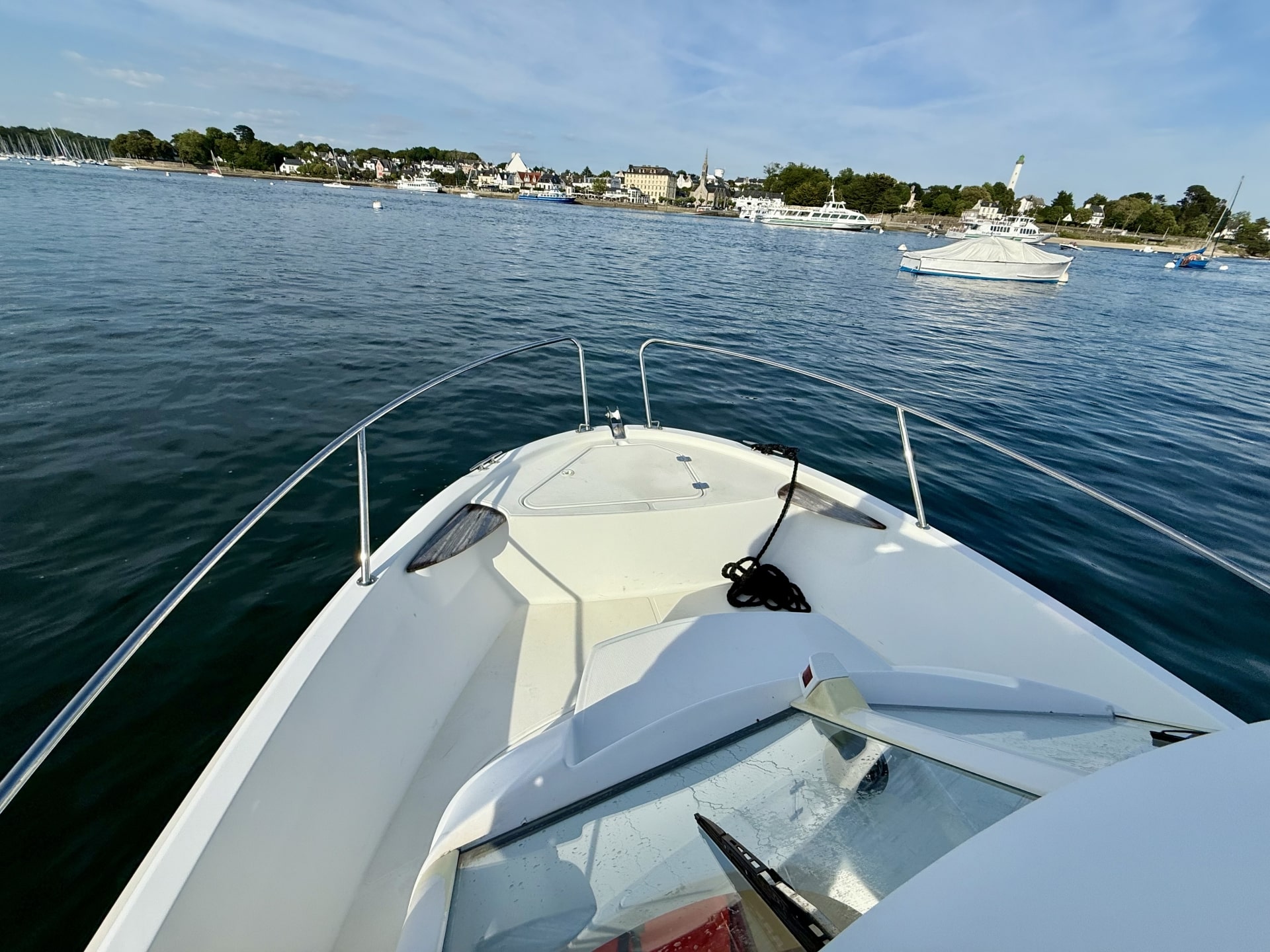 Timonier polyvalent, idéal pour une balade abritée, une partie de pêche ou une première expérience après l’obtention du permis. Confortable en avant comme en arrière saison, pour naviguer sur l’Odet ou jusqu’aux Glénan.