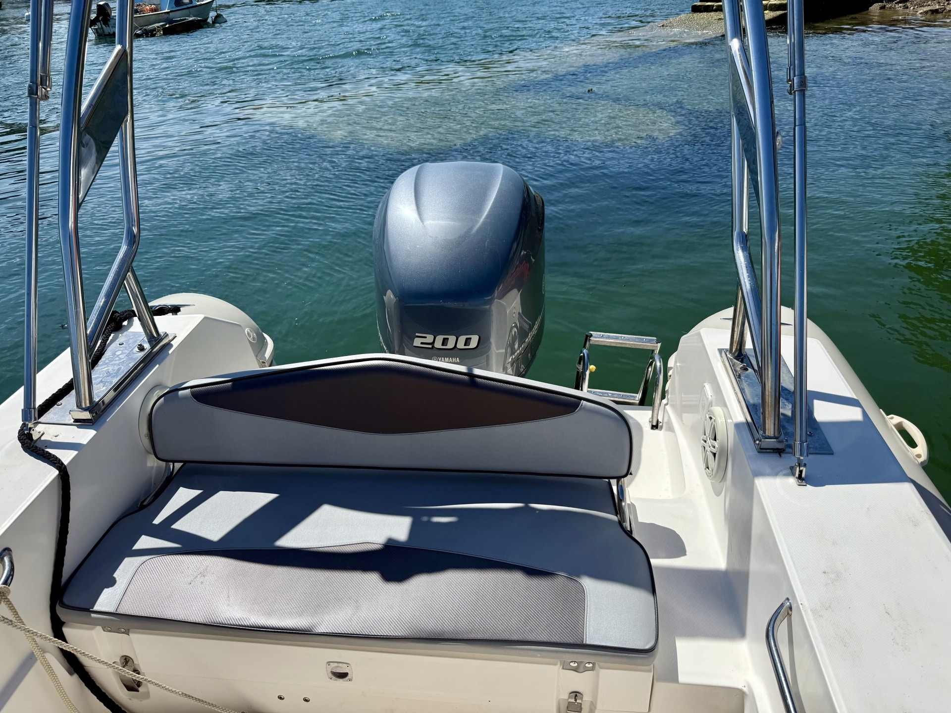 Semi-rigide puissant et spacieux, idéal pour une journée en baie de Bénodet ou vers l’Archipel des Glénan, avec possibilité de pratiquer les sports nautiques en option (bouée, ski, wake). Confortable pour une grande famille ou un groupe d’amis.